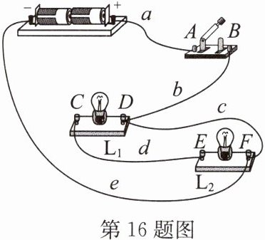 (填“串联”或“并联”)的正确电路. 小强将多余的c导线拆除以后,闭合开关时,灯$L_{1}$、$L_{2}$都不亮. 用一段导线的两端接触A、B两点时,两灯都不亮;接触C、D两点时,两灯也不亮;接触E、F两点时,只有灯$L_{1}$亮. 对此,下列判断中正确的是B