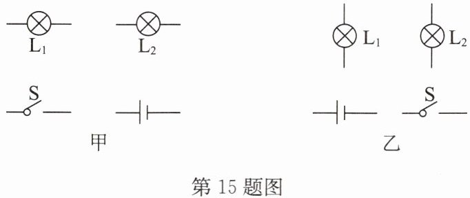 15. 如图所示,保持元件位置不变,导线不交叉,开关S控制整个电路.