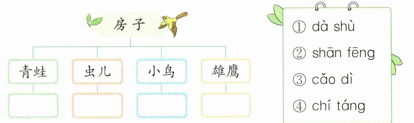 1. zi chí shì yīng 2. ④ ③ ① ② 3. 示例:lán tiān