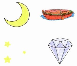 1. 月儿 也 我和爸爸妈妈 头 又 在 右 见 2. ② ③ 3. 示例:(1)弯弯 月牙 小船 (2)闪闪 星星 钻石
