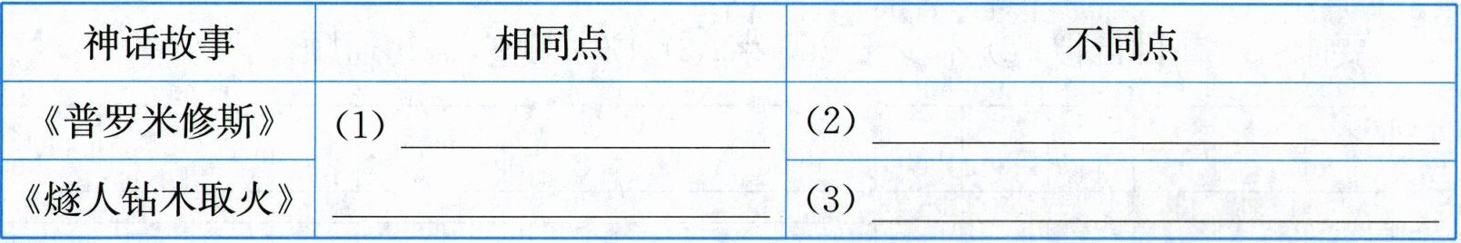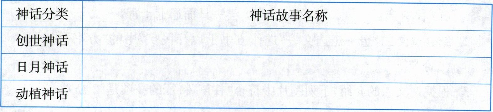 3.根据材料二的神话类型,将材料三提及的神话故事进行分类,完成下表。(每种类