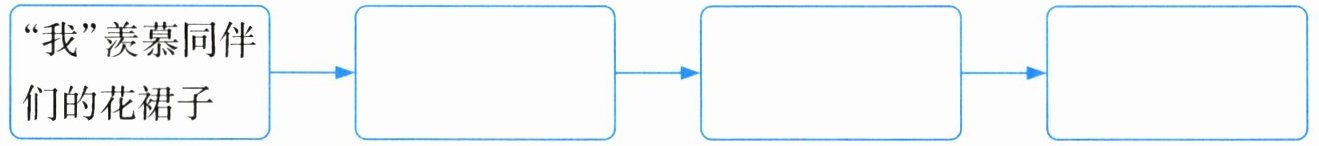 2. 新思维 逻辑梳理 文章贯穿全文的线索是“花裙子”,围绕这个线索作者写了四件事,请按照顺序填写下图。(6分)