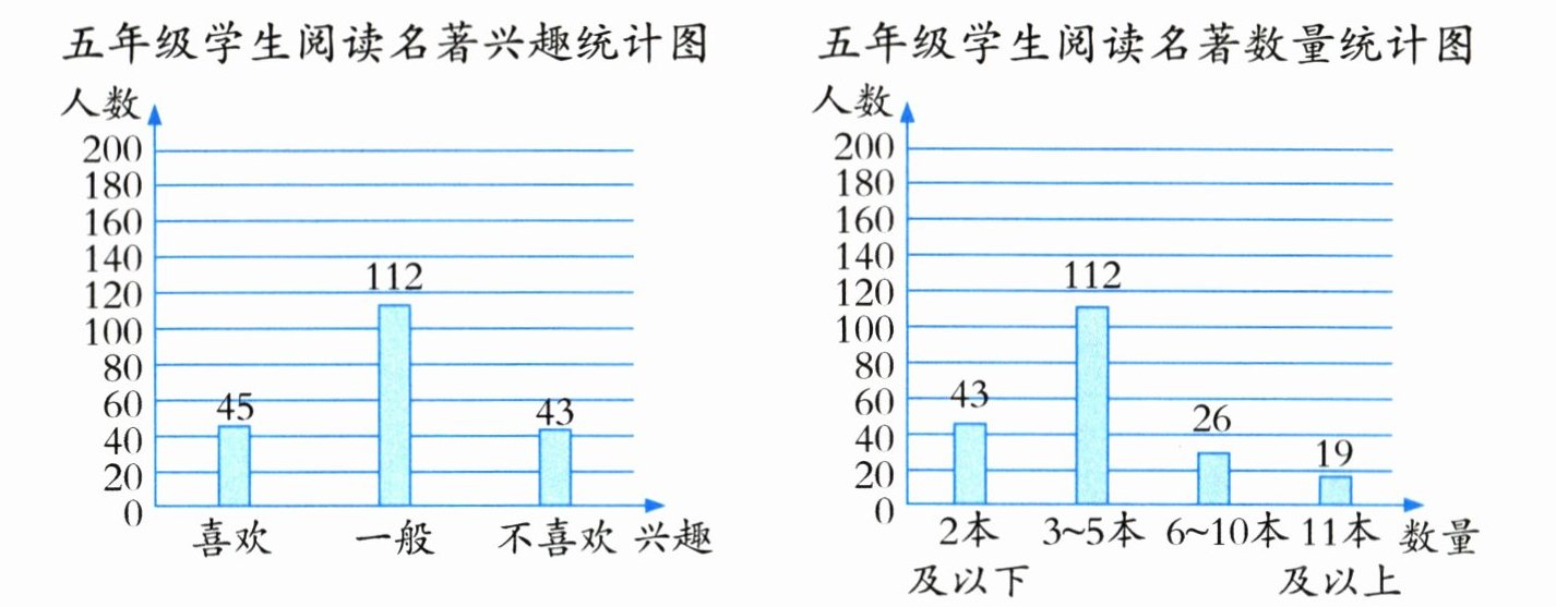 4月23日是“世界读书日”,某校对五年级学生进行了一次半年内阅读名著的调查,以下是两份调查统计数据。