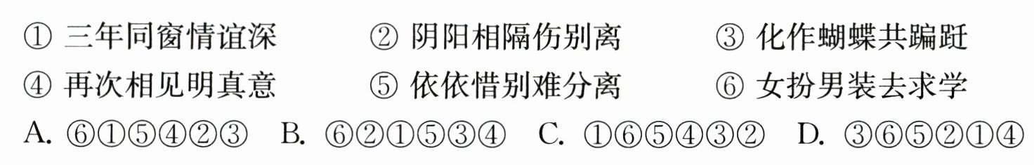 (2) (扬州高邮市期末)下面是剧本中的情节,请按事情发展的顺序排序,正确的一项是 ( )