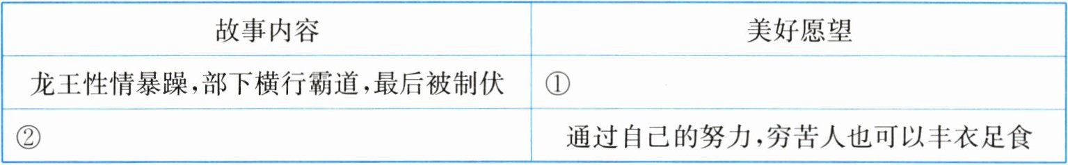 3. 这个故事寄托着人们哪些朴素的愿望呢? 请把你的发现填入表格。