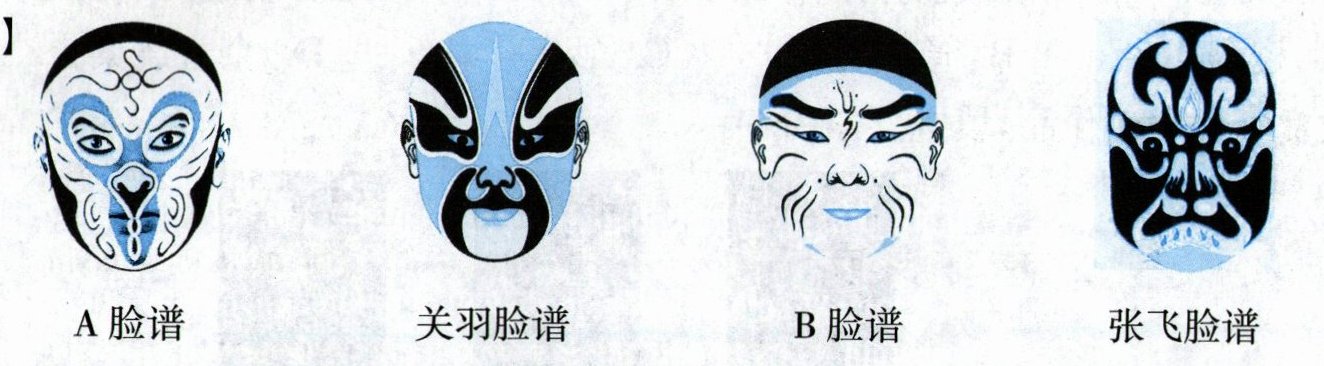 A 脸谱 关羽脸谱 B 脸谱 张飞脸谱