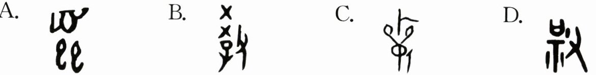 2. 新情境 传统文化 (2025·温州洞头区期末)文成县“太公祭春祭”随“春节”载入世界非遗史册,“祭”字的甲骨文描绘了一只手拿着鲜肉放在祭台上的场景(见右图)。下列可能是甲骨文“祭”的一项是 ( )