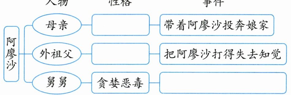 8. 新思维 创意运用 完成《童年》中的人物关系图谱,正确的一项是 ( )