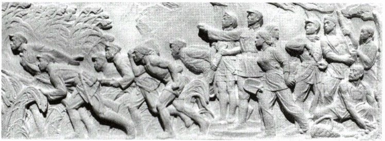 五 六年级(2)班的同学在烈士纪念馆欣赏了“抗日游击战争”浮雕图片,请你观察下面的图片并完成练习。(12分)