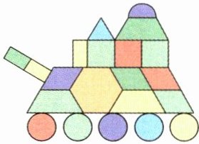 2. 亮亮用一些彩纸拼出了自己喜欢的坦克样式。
