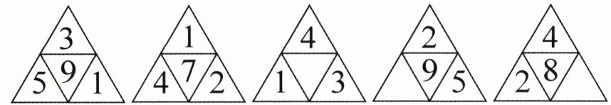 (1)7 2 9 0 (2)5 8 (3)8 2 2 [解析:(1)间隔着看,从第1个数开始,每隔一个数依次加2;从第2个数开始,每隔一个数依次减2;(2)从第3个数开始,每一个数都等于它前面两个数的和;(3)上面的数+左边的数+右边的数=中间的数。]