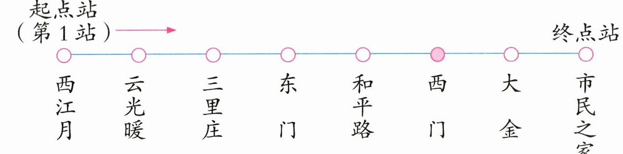 5. 下面是某条地铁线路图。(到达哪一站,哪一站就亮灯)