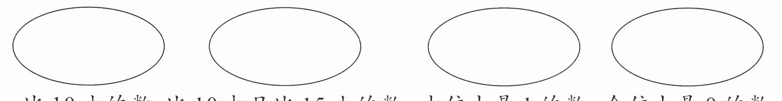 1. 比10小的数:9,8,7,6 比10大且比15小的数:11,14,12,13 十位上是1的数:11,15,14,19,12,10,13,17 个位上是0的数:10 2.