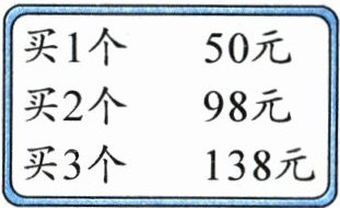 464 [解析:根据题意可知,可以买3组3个,再单独买1个,要花138×3 + 50 = 464(元);也可以买2组3个和2组2个,要花138×2 + 98×2 = 472(元)。因为472>464,所以最少要花464元。]