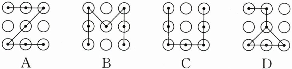 7. (2025·浙江台州市期末)手机通过绘制解锁图案可以直观且便捷地验证用户身份,李老师将手机设置了“只有一组平行线和一组垂线”的解锁图案,下面符合要求的是(