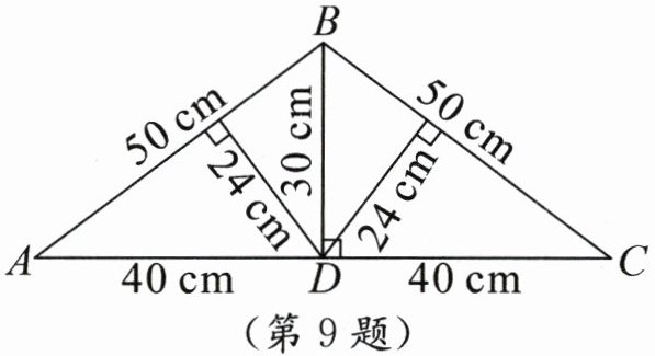 9. 亮点原创 框架式结构是中国古代建筑在建筑结构上的一个重要特征。亮亮对中国古代建筑有浓厚的兴趣,于是他准备自己动手做一个古建筑模型,如图是其中的一个房梁,则点D到BC的距离是(