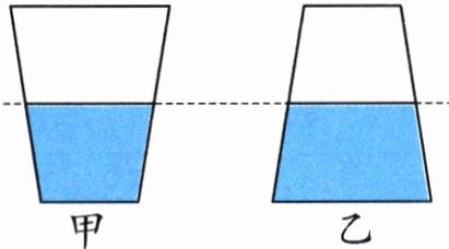 )毫升葡萄酒。将剩下的葡萄酒倒入2个容量是500毫升的容器中,并使液面保持同一高度(如图),则甲容器内的葡萄酒比乙容器内的葡萄酒(少
