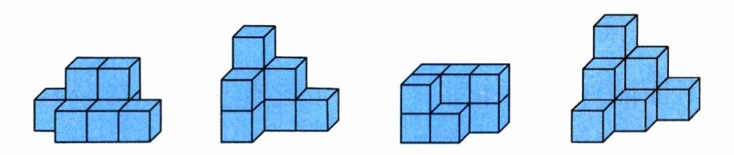 5. 下面的立体图形各是由几个小正方体摆成的? 数一数,填一填。