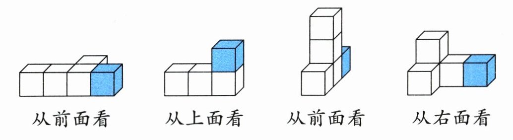 )面摆放一个同样大的小正方体。(3) 如果从前面看到的形状是,