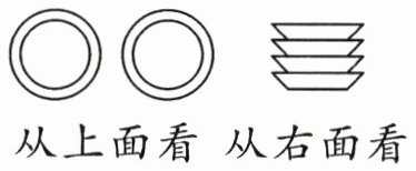 3. (2025·扬州高邮市期末)餐桌上摆着若干个盘子。小明从两个不同的方向观察,看到的形状如右图,餐桌上至少有(