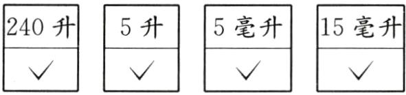 2. 估计下面容器的容量,在合适的答案下面画“√”。(8分)