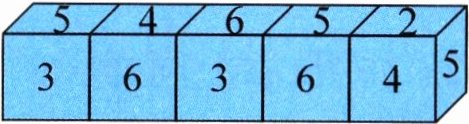 4. 5个完全相同的正方体木块,按相同的顺序在每个面上分别写上数字1~6,把木块摆成下图的形状,那么与2所在的面相对的面上的数字是几? 与4所在的面相对的面上的数字是几? 与5所在的面相对的面上的数字是几? (6分)