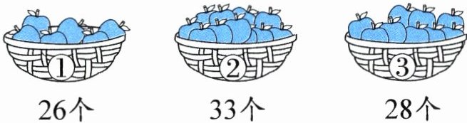 2. 如图,水果店里有三筐苹果,要使每筐中苹果的个数相等,可以先从②号筐拿出(