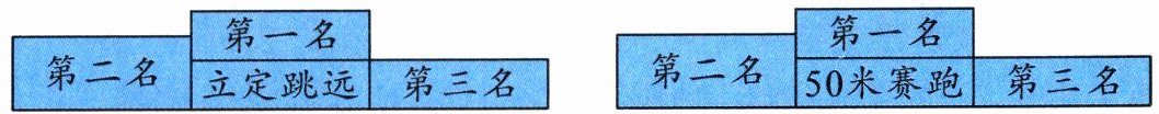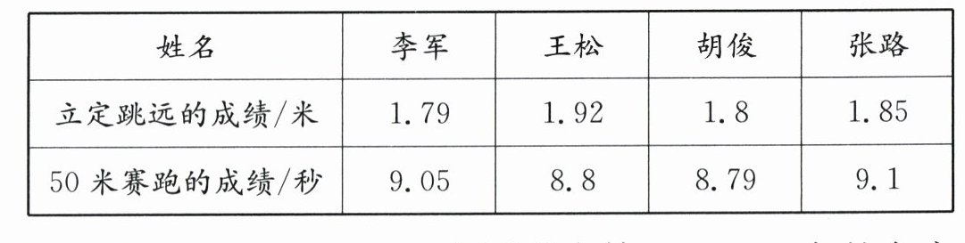 2. 五年级一班4名同学的立定跳远和50米赛跑的成绩如下。