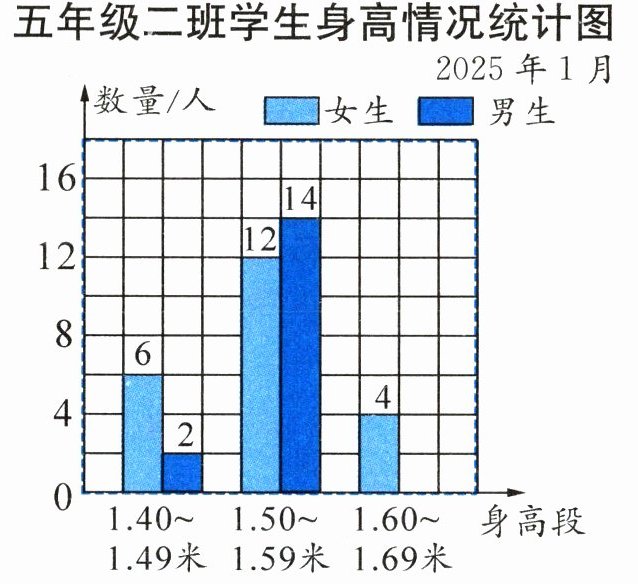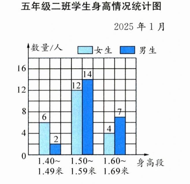 3. (2024·盐城亭湖区期末)学校进行体质健康测试,将五年级二班学生的身高情况分三段统计,结果如下: