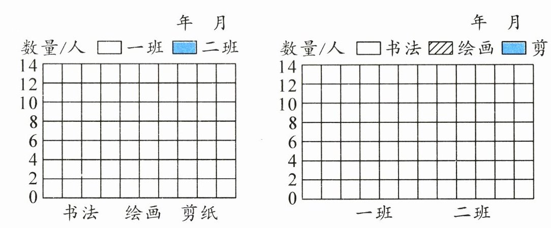 (2) 在参加绘画小组的同学中,( )班的人数多一些。解答这个问题,选择( )的统计图更好比较(填“左边”或“右边”)。(4分)