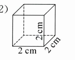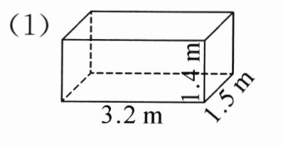 答案: (1)表面积:(3.2×1.4+3.2×1.5+1.5×1.4)×2=22.76(m²) 体积:3.2×1.5×1.4=6.72(m³) (2)表面积:2×2×6=24(cm²) 体积:2×2×2=8(cm³)