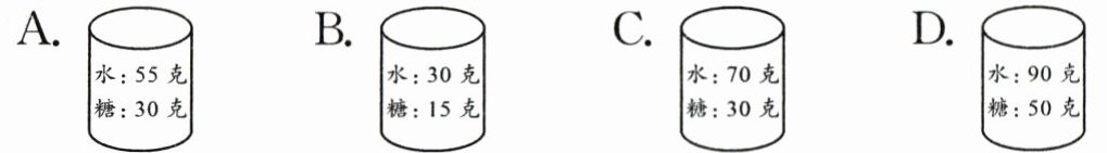 1. (2025·南京鼓楼区期末)王阿姨把40克糖充分溶化在80克水中,下面与这杯糖水一样甜的是(