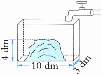 (2) 如图,玻璃鱼缸里面有一块高为4分米、体积为50立方分米的假山石,如果水龙头以每分钟5升的流量向鱼缸里注水,那么至少需注水多长时间才能将假山石淹没?(5分)
