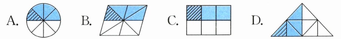 1. 新趋势 算理理解 下面不能用来表示$\frac {1}{2}×\frac {1}{4}$的是(