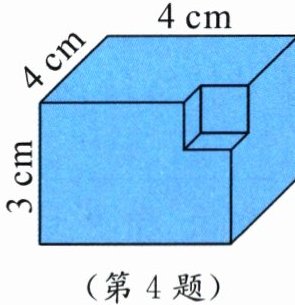 4. 新素养 几何直观 透雕是指将浮雕作品的基础背景部分去掉。李师傅计划在如图所示的长方体上制作一个透雕艺术品,他先去掉了一个棱长1厘米的正方体,则现在的立体图形表面积(