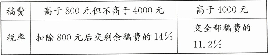 5. 新素养 应用意识 国家规定个人出版图书获得稿费的预扣税款计算方法如下表。(稿费不高于800元不纳税)