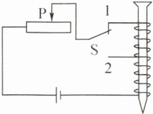 3. 为探究“影响电磁铁磁性强弱的因素”,小明以电池(电压一定)、滑动变阻器、数量较多的大头针、铁钉以及较长的导线为主要器材,进行如图所示的简易实验。