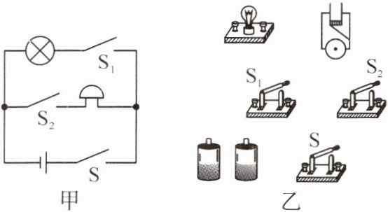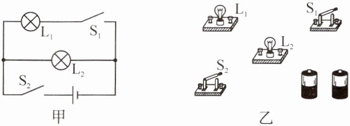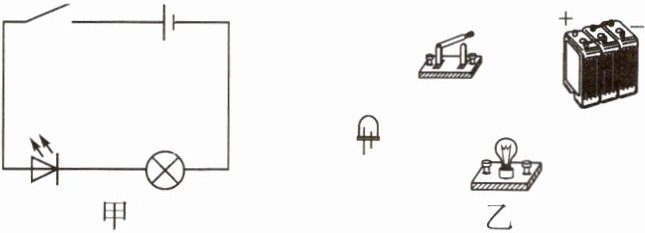 4. 按照图甲所示的电路图,将图乙所示的实物元器件连接起来。