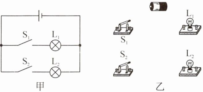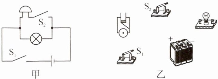 6. 按照如图甲所示的电路图,将图乙中各个元器件连接起来。