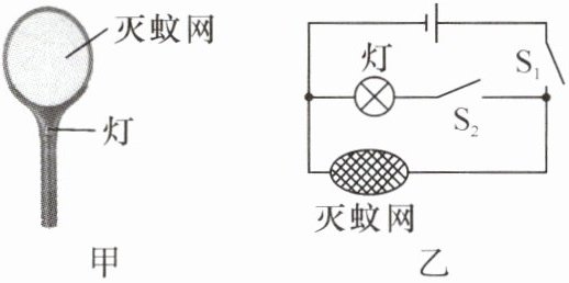 15. 如图甲所示的电蚊拍有灭蚊和照明功能,图乙是其内部简化电路。闭合开关