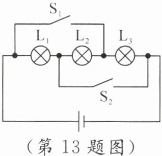 )A.只闭合开关$S_1$时,灯泡$L_1$和$L_3$串联