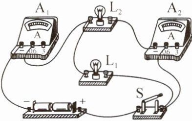 5. 在探究串、并联电路中电流的规律时,做了如图所示的实验。闭合开关后,电流表$A_{1}$、$A_{2}$的示数分别为0.5A和0.3A,则通过小灯泡$L_{1}$的电流为