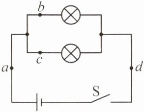 3. 如图所示电路,闭合开关后,比较a、b、c、d四处电流的大小,其中不正确的是(