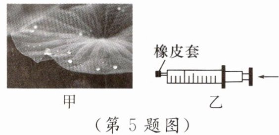 5. 如图甲,荷叶上的两滴露珠接触时,能自动结合成一滴较大的露珠,该现象说明分子之间存在