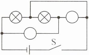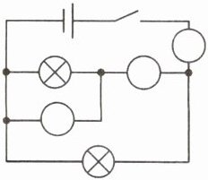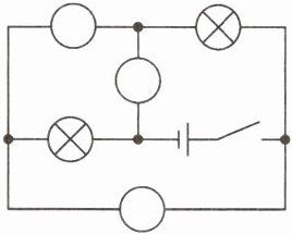 [变式题](判定电表——并联电路)如图所示电路,请在三处“○”内分别填上电流表或电压表符号,使开关闭合时电路连接正确且为并联电路。
