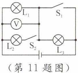 11. 如图所示电路,当$S_1、$$S_2$都断开时,电压表示数