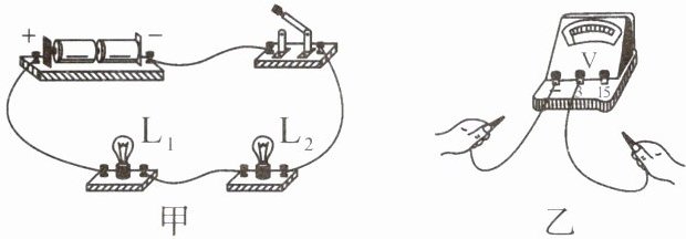 9.倩倩在摆弄实验器材时,连接了如图甲所示电路。闭合开关$,L_1$和$L_2$正常发光,过一会儿两灯突然熄灭。她利用图乙所示的电压表查找故障,若电路中只有一处故障,则下列判断正确的是 (