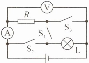 )A.只闭合$S_1,$电阻器R与灯泡L并联