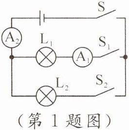 1. (2024·云南)如图所示的电路中,电源电压恒定。闭合开关S、$S_1$和$S_2,$灯$L_1、$$L_2$都正常发光。下列说法正确的是(