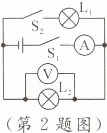 2. (2024·重庆A卷)如图所示电路,电源电压保持不变$,L_1$和$L_2$是两个相同的小灯泡。先闭合开关$S_1,$记录两电表示数;再闭合开关$S_2,$电流表和电压表的示数变化情况是(
